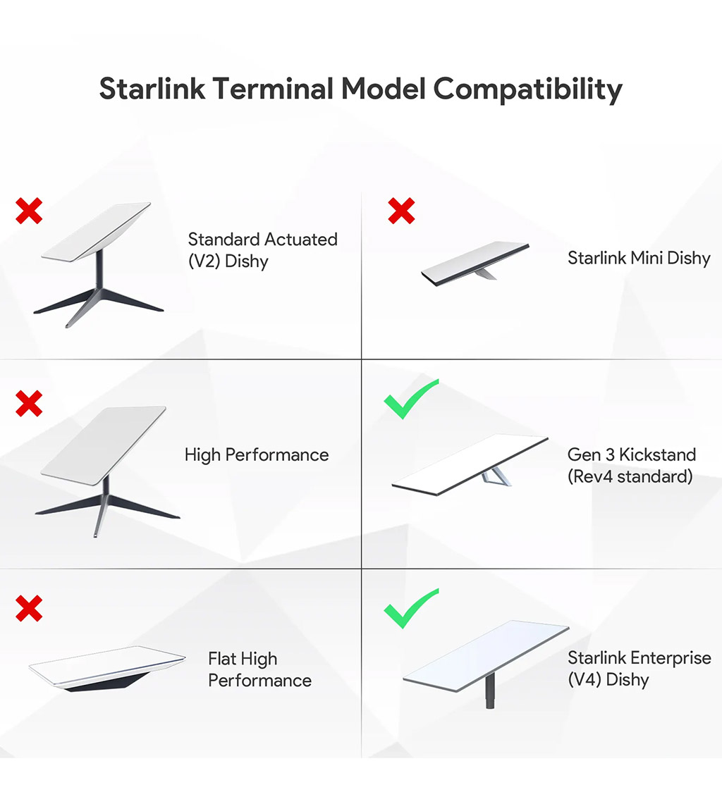 - Specifically Designed for Starlink: Tailored for Starlink Standard Gen3 and Starlink Enterprise models, ensuring a stable and secure installation. Ideal for both professional and recreational use, enabling seamless connectivity on the go.