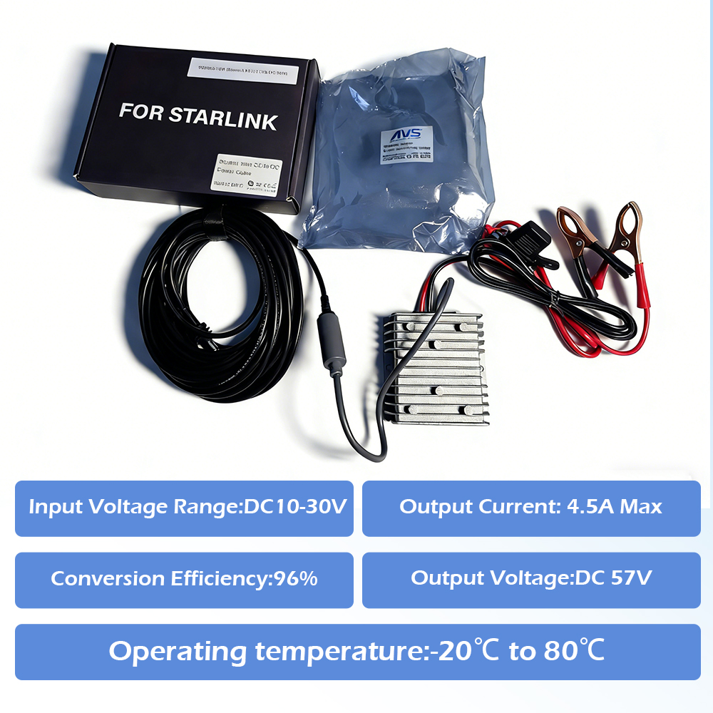 • Cable Compatibility: Works directly with AVS Starlink DC-to-DC Cables (2 m – 15 m lengths) to the Starlink Gen 3 router.