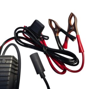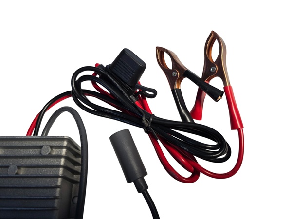 • Input: 12 V DC or 24 V DC via alligator-clip battery clamps