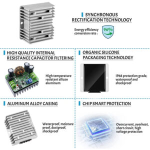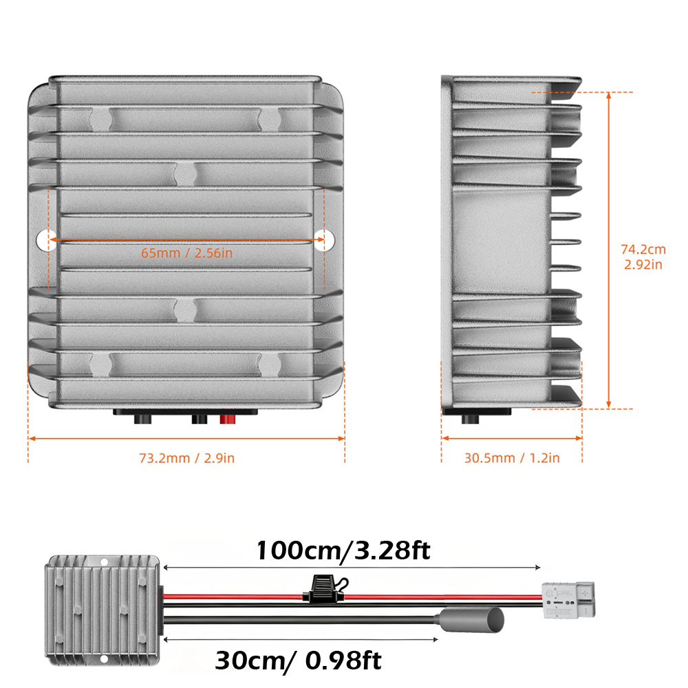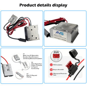 • Input Lead: 14 AWG × 1 m pigtail with 20 A inline fuse (mount fuse close to battery positive terminal)
