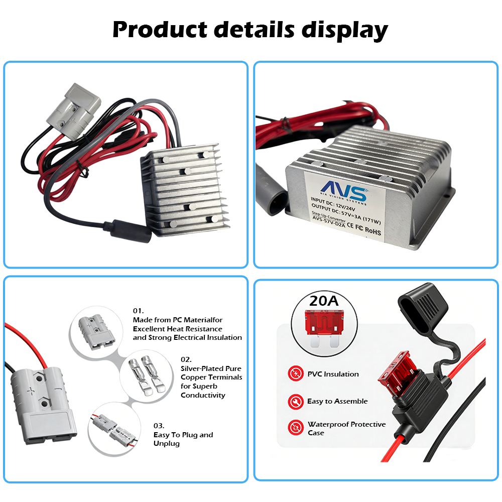 Compact 12 V or 24 V to 57 V Step-Up Converter for powering Starlink Gen 3 from vehicles or off-grid systems. Heavy-duty Anderson with fused input and waterproof DC output.  (Starlink and DC to DC cable not included)