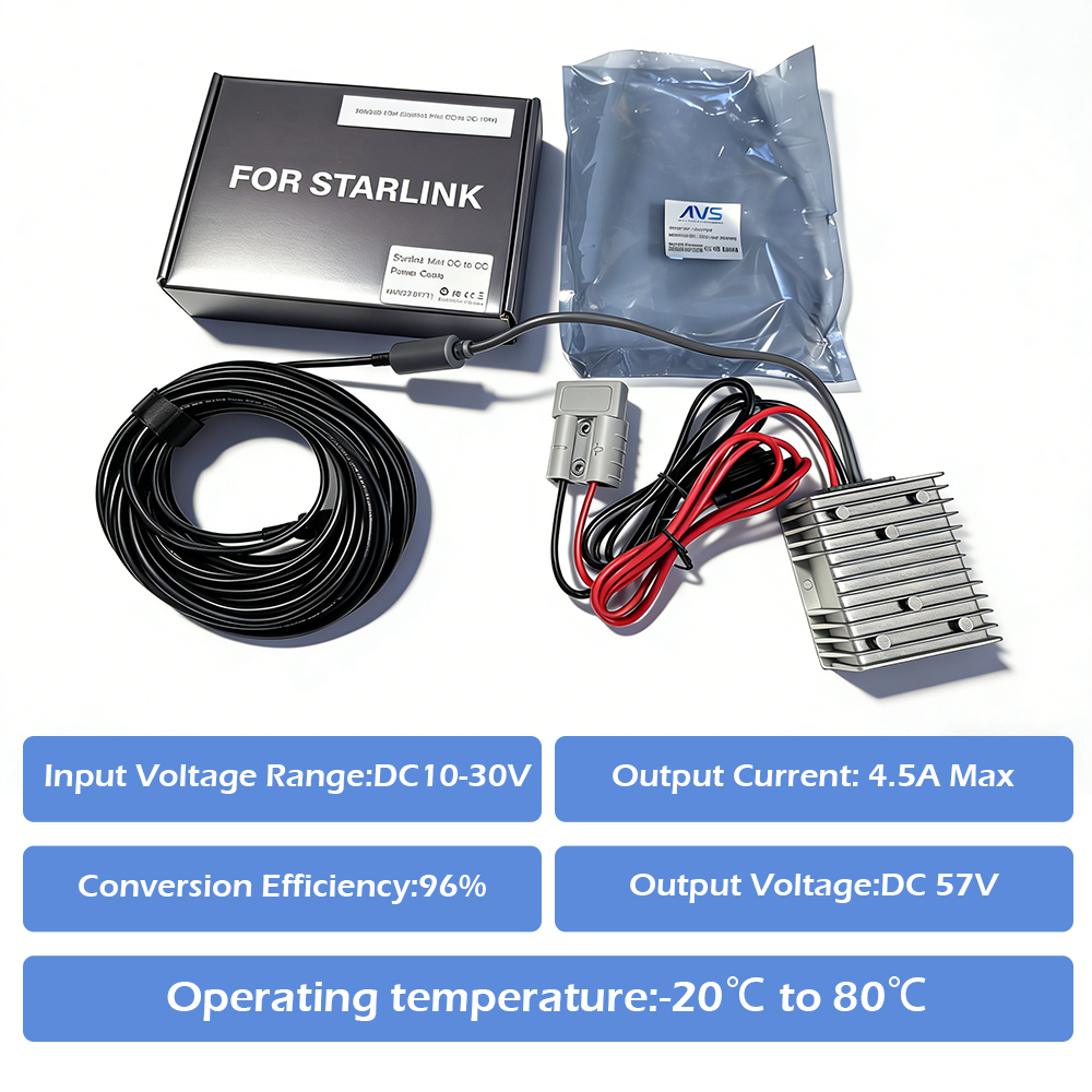 • Cable Compatibility: Works directly with AVS Starlink DC-to-DC Cables (2 m – 15 m lengths) to the Starlink Gen 3 router.