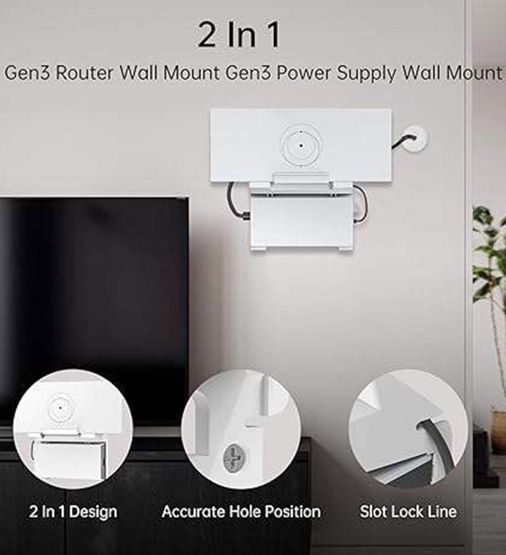 Durable 2-in-1 wall mount for Starlink Gen 3 V4 router and power unit. Easy to install with cable management, ideal for home or RV use, mounts on wall or flat surface.