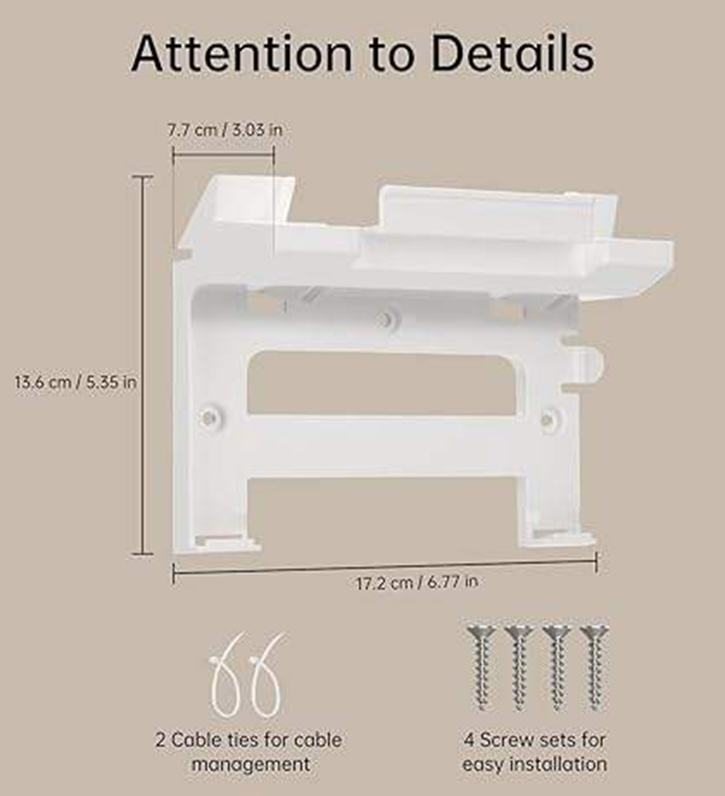 Its versatile design allows for either wall mounting or flat-surface placement, while the included self-tapping screws make installation quick and hassle-free. An integrated cable management channel helps reduce clutter, ensuring a clean, professional-looking setup whether used in homes, offices, or RVs.
