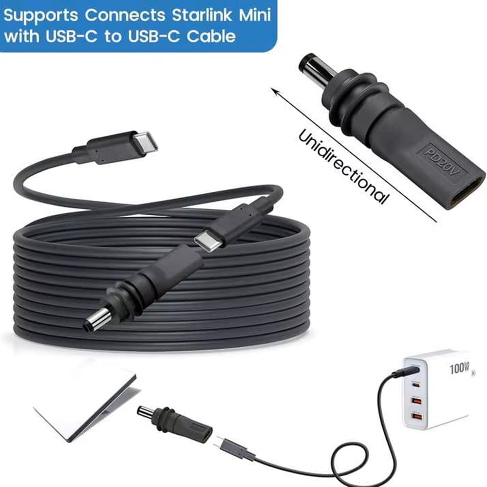 - The cable converts USB-C PD power to a 5.5 × 2.1 mm DC plug – compatible with the power port on the Starlink Mini.