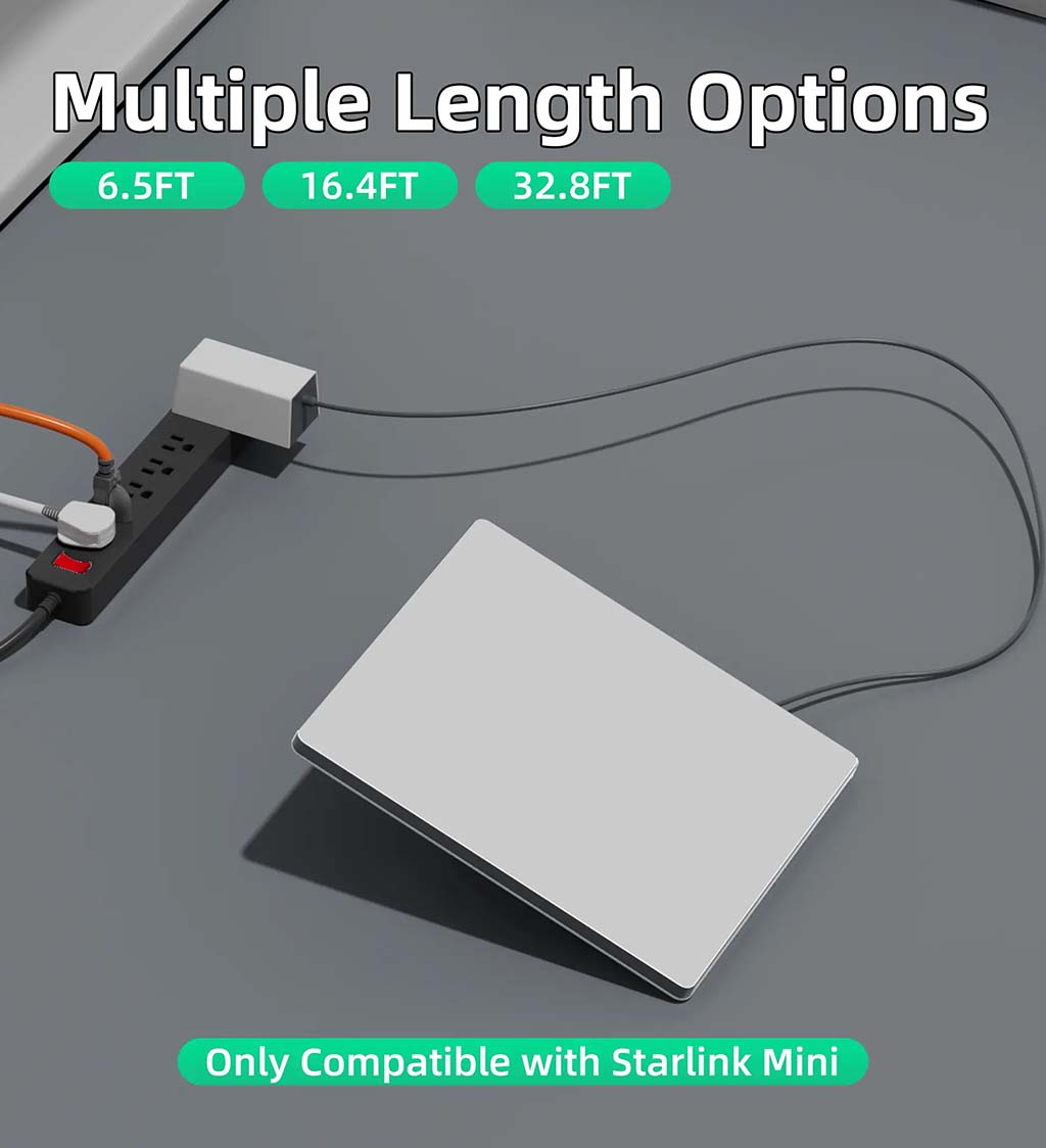 This replacement DC power cable for Starlink Mini is available in 2M and 5M lengths. These options provide flexibility for various installation scenarios, ensuring you have the ideal cable length for your Starlink Mini setup.