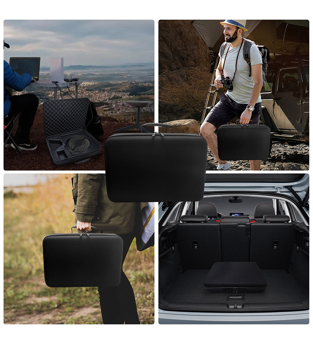 Tailored specifically for the Starlink Mini, the case comfortably fits the dish along with cables, adapters, and tripod stands, making it a perfect all-in-one transport solution. Its reinforced exterior and water-repellent surface make it ideal for outdoor use, while its portable size allows for easy handling, storage, and packing.