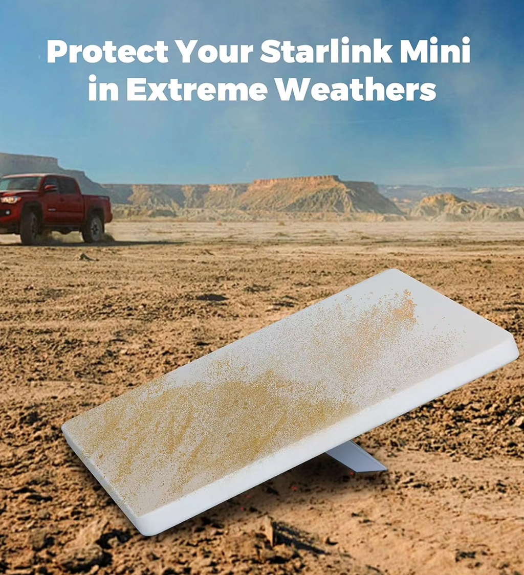 Phone-like protection for your Starlink Mini. This snug, signal-friendly silicone cover shields against drops, weather, dirt, and everyday wear. It is durable, weatherproof, and easy to clean, with full coverage and a heat-dissipating honeycomb design.  (Starlink not included)