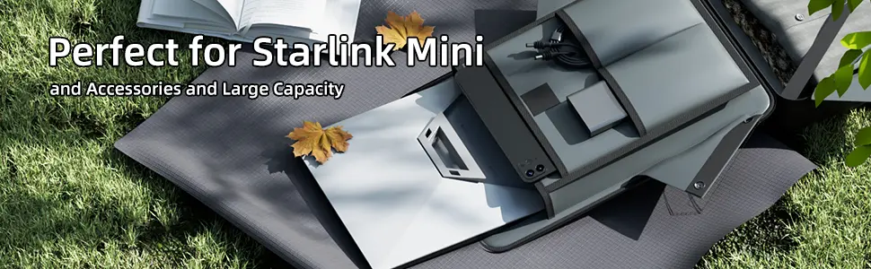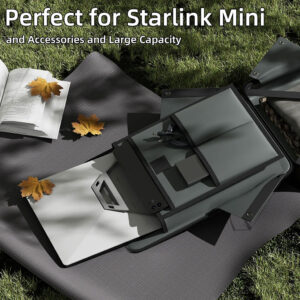 This travel backpack is designed for the Starlink Mini system. The case offers ample storage space, easily accommodating the Starlink Mini dish, cables, power supply, kickstand, pipe adapter, and other accessories.